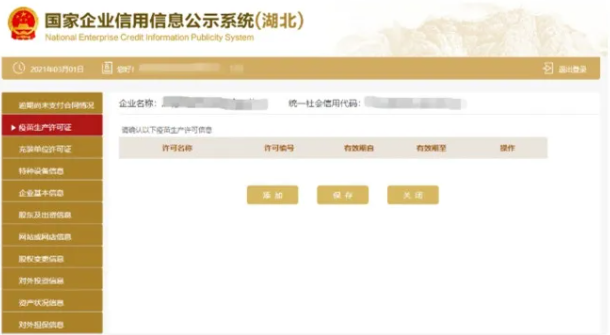 对外投资信息 进入对外投资信息页面 点击添加填写对外投资信息 点击保存可填写多条对外投资信息 也可删除或修改。